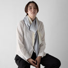 和を感じさせる、落ち着いたシックな色合いのストール。グラデーションのようにも見えるこのストールですが、 前もって染め分けた糸を織り上げる「絣」という絞り染め・織の技術を用いて仕立てています。経糸に白い糸を使用することで、濃色部分にも白いラインが入り、軽やかな印象を添えます。