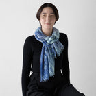 緑の瑞々しさから紅葉によって山々が美しく色づく秋の情景を、「手捺染」と呼ばれるスクリーンプリントで表現しました。深みのある色の重なり合いと、幾何学的なパターンで表現したかすれ模様のデザインは、普段柄物をお召しにならない方でも、 お洋服のアクセントとして気軽に取り入れていただけやすいデザインです。