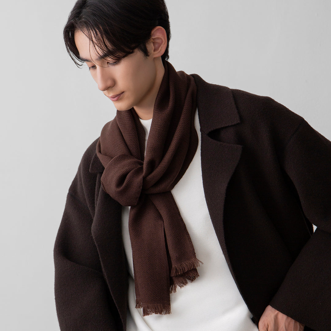チャコールグレイはシックな印象に。ネイビーはコーディネートに上品さを添え、ブラウンは顔まわりに温かみのある印象でお使いいただけます。