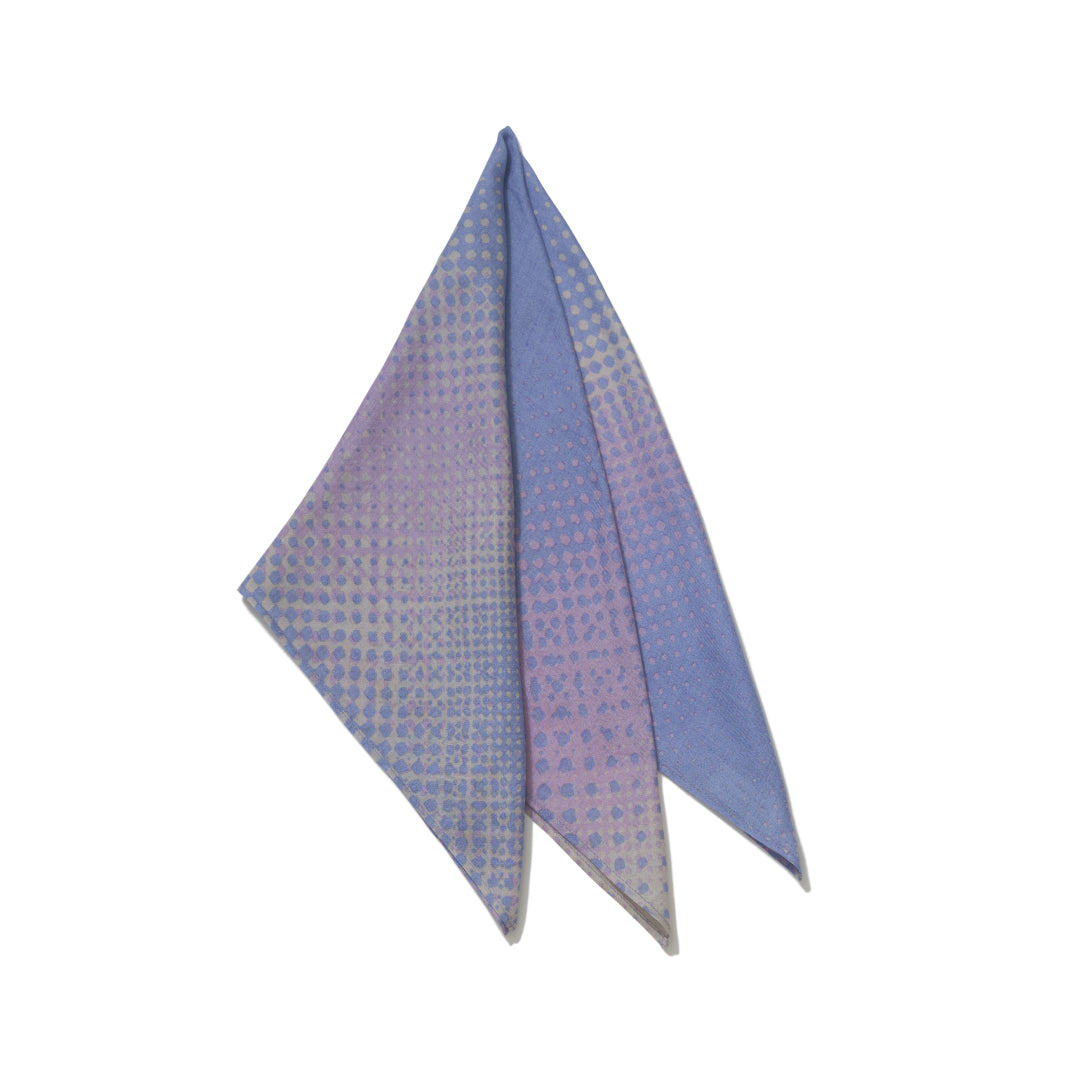 ぱらぱらと雨が音を立てて、地面に広がる水面や春の草花におちる情景をスカーフで表現しました。「手捺染」と呼ばれる伝統的な技法で、複数の色合いを美しく重ねることで、やわらかで繊細な春らしい色合いに。コンパクトなサイズ感で、いつもの装いに取り入れやすい一枚です。春夏らしい華やかさと上品なアクセントをお楽しみいただけます。