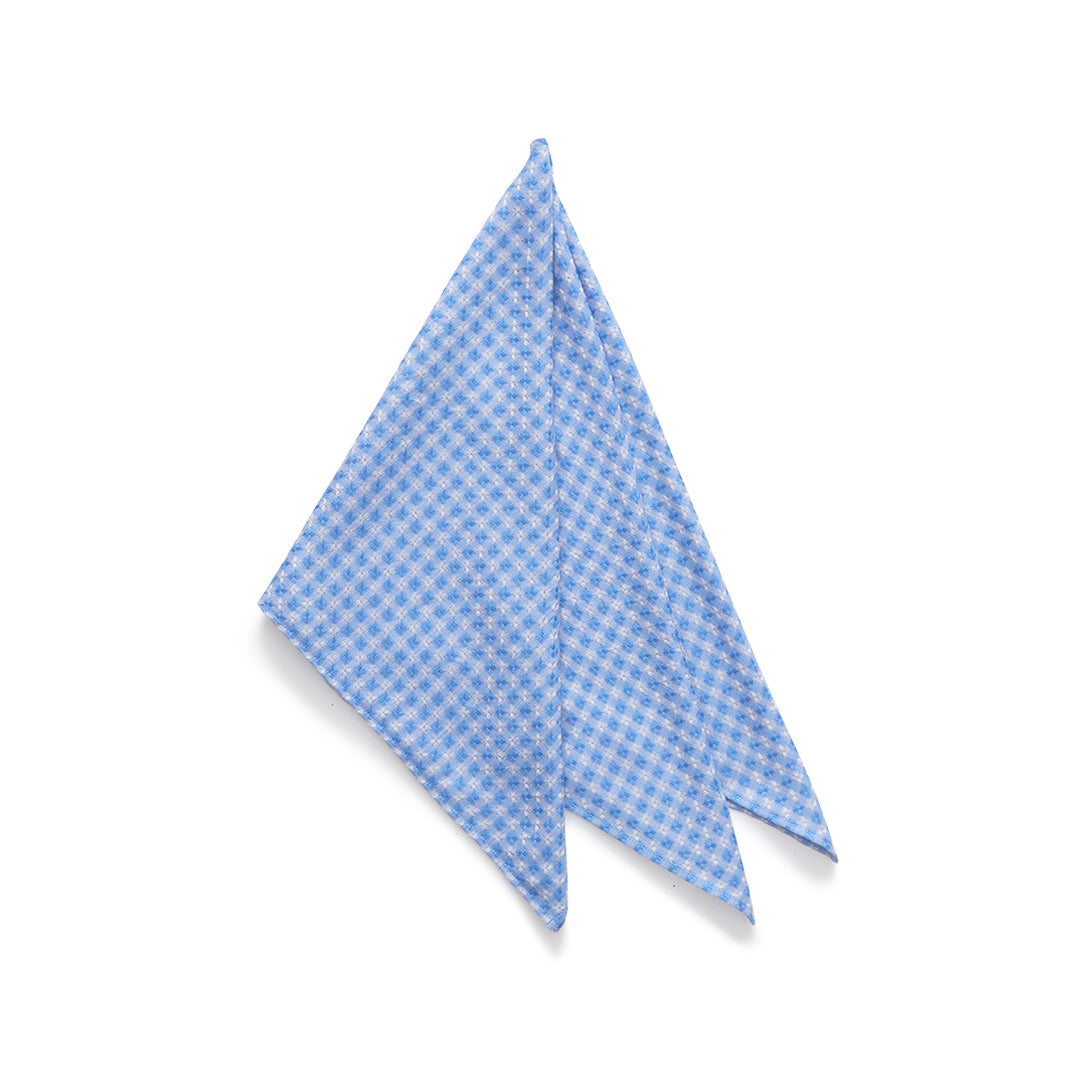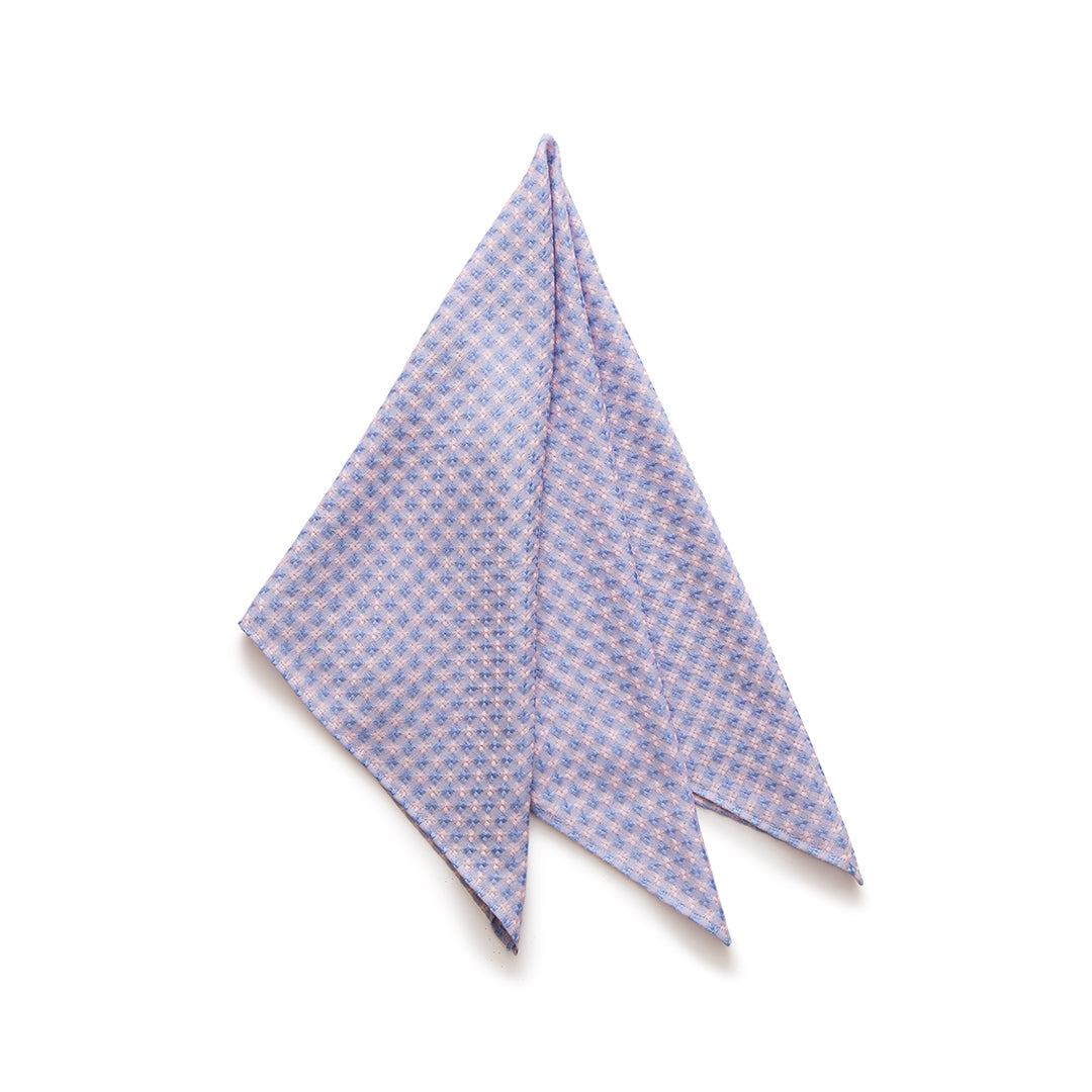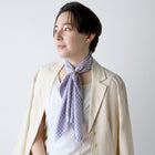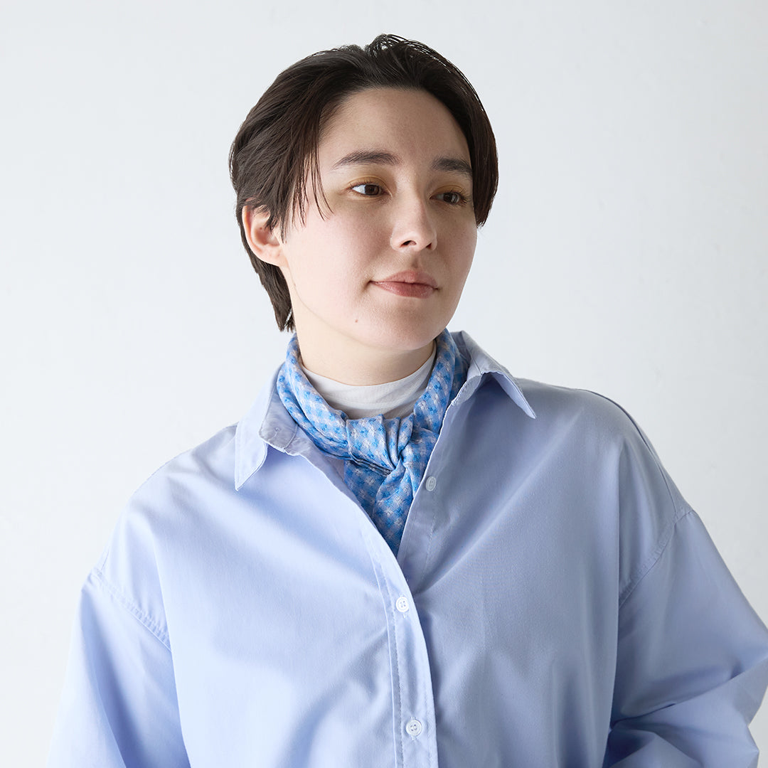 しとしとと降る雨の中で、鮮やかに映える紫陽花の花びらを、ブロック調の織りと2色の糸使いで表現しました。 一枚の生地の中に、ふっくら浮き立つような緩い織りと、コンパクトで密な織りの2種類を組み合わせることで、メリハリのついた立体感のある風合いに仕上がっています。