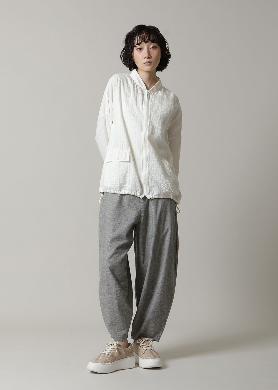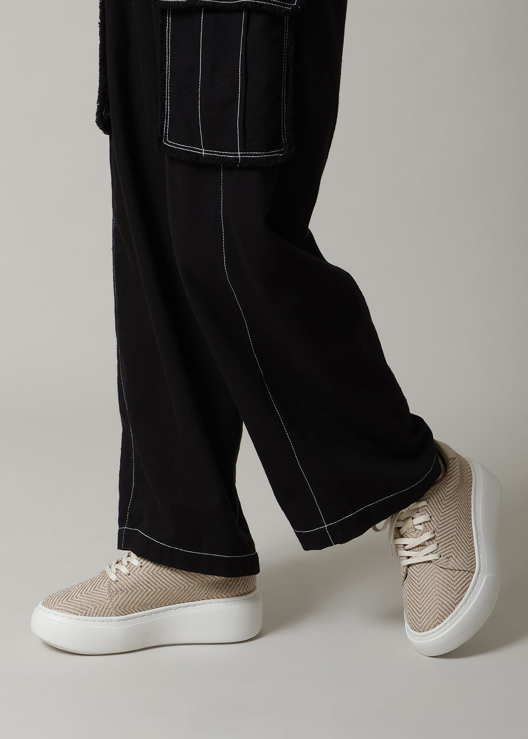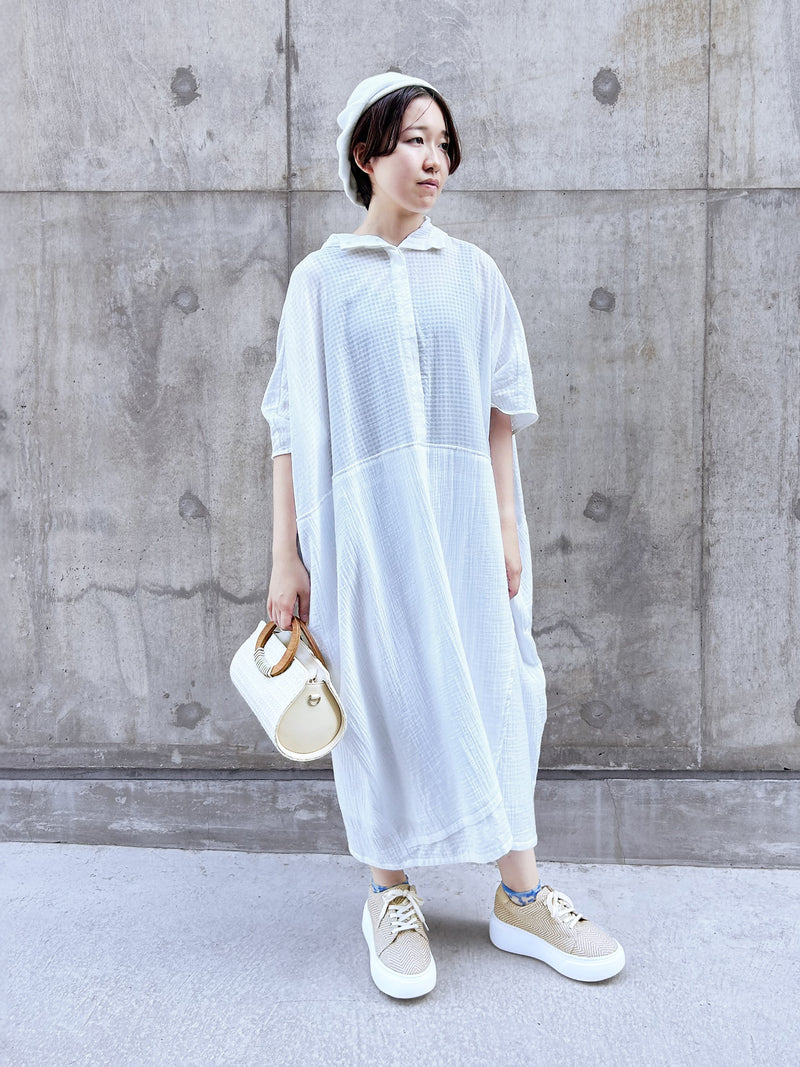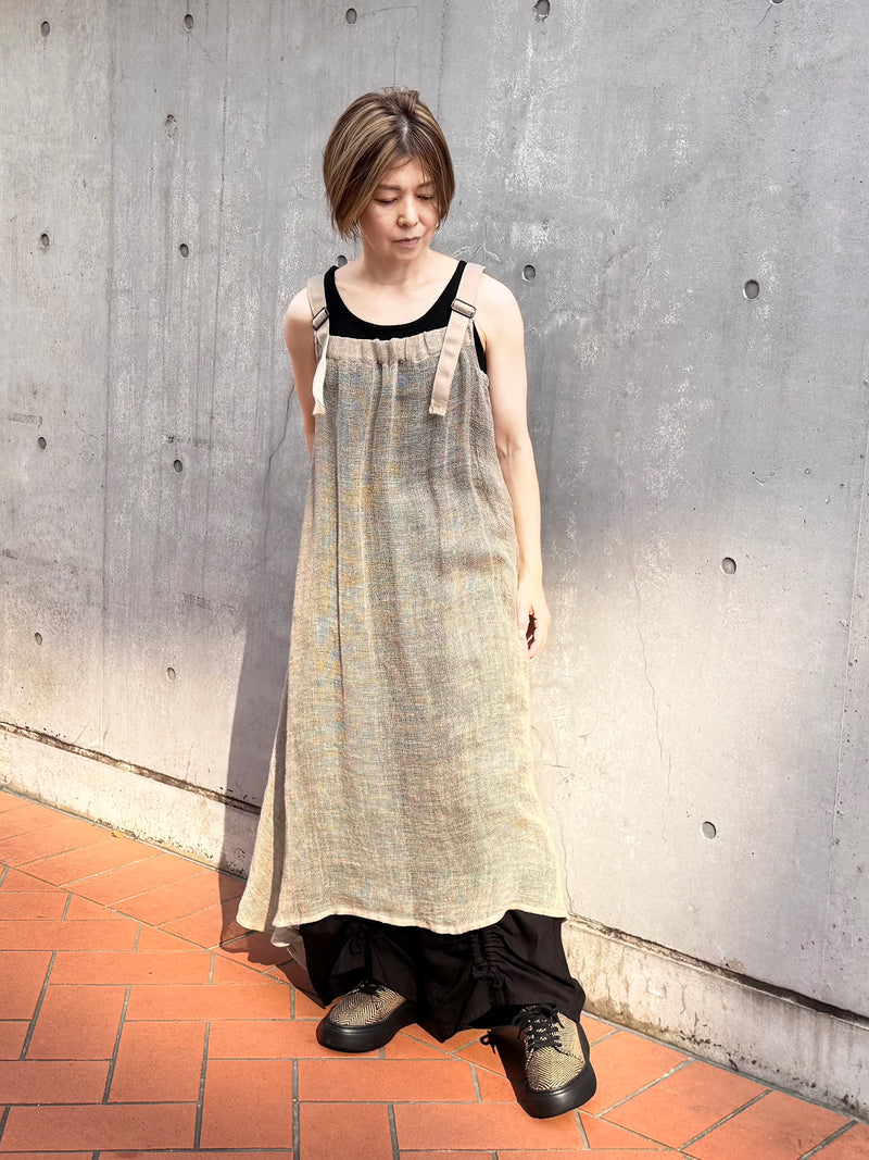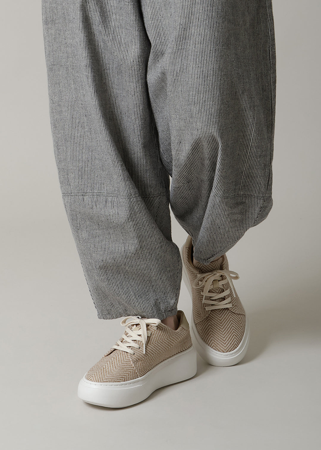 織の豊かな表情とさらりとした麻のシャリ感ある風合いが、足元にユニークな印象を与えながら、軽やかさを演出します。