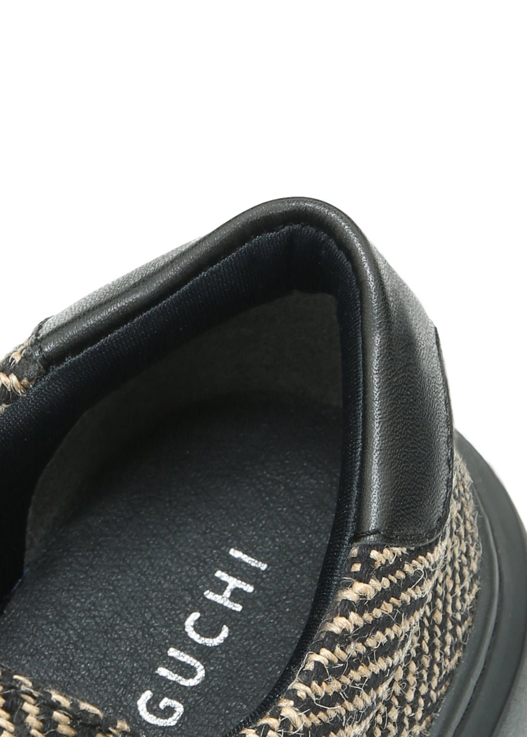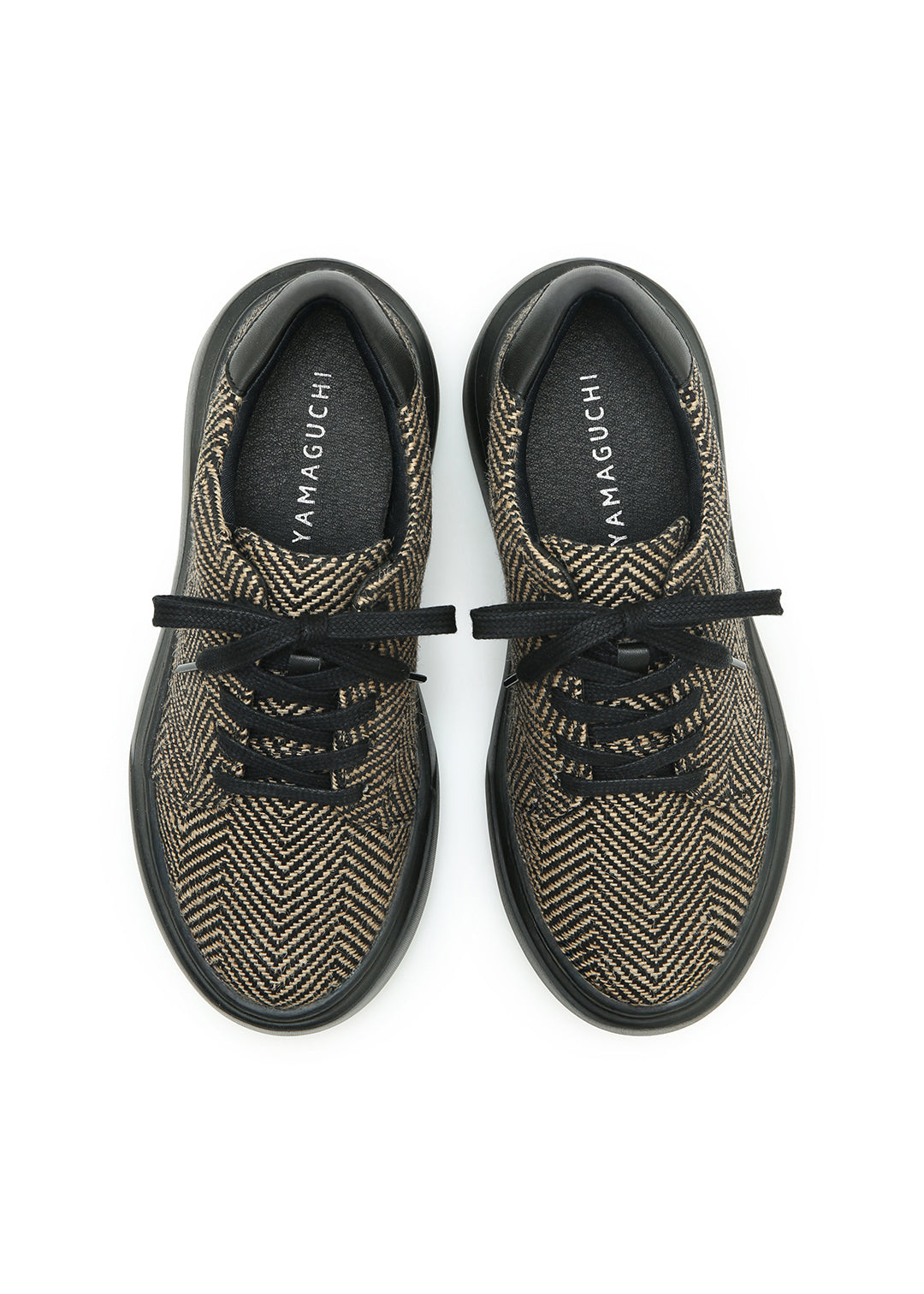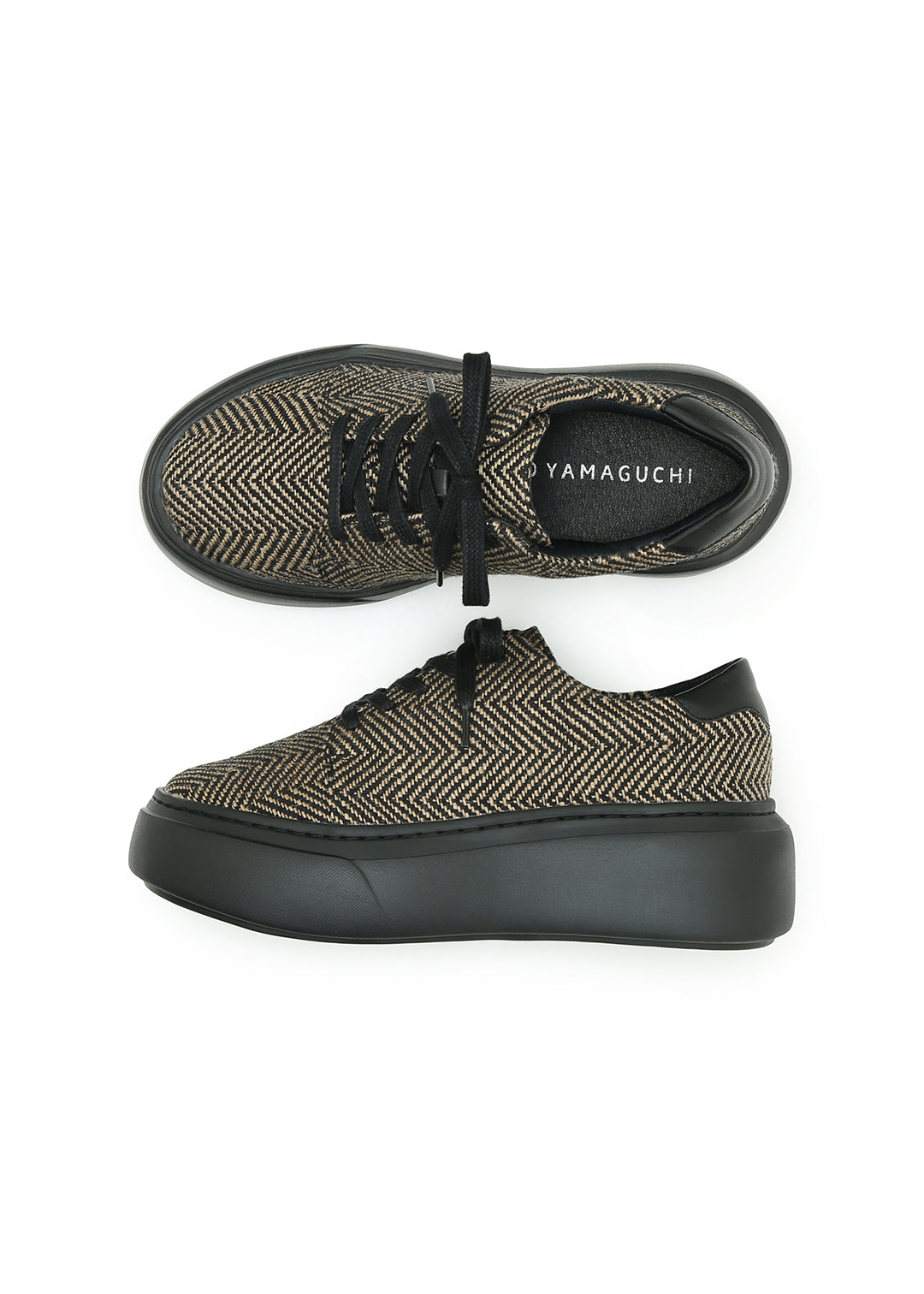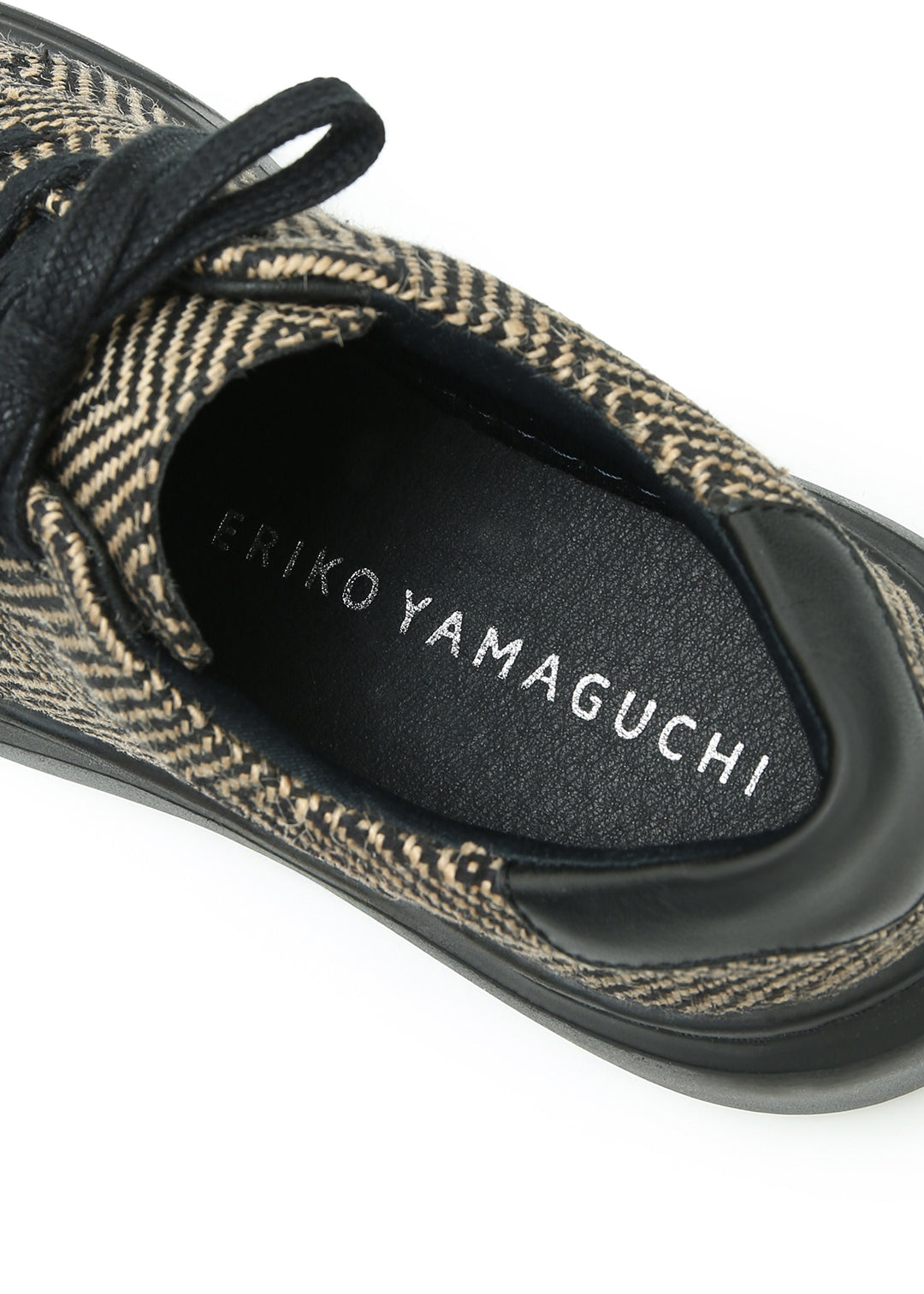 美しい織模様のジュートに、外羽根と太めの紐、厚底ソールを組み合わせることで、カジュアルでありながらシックな印象をそえるデザインに仕上がりました。アッパー部分とソールのユニークな配色もこれまでにはなかった新鮮なデザインで、THE WALKERの新たな魅力を引き出します。