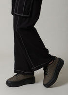今回のスニーカー開発では、「歩きやすさ」を最も重視し、つま先からかかとまでがひとつなぎになった「プラットフォームソール」という台状の靴底を使用。 厚みのあるソールが、クッションの役割を果たしながら、地面への着地の衝撃を和らげ、足への負担を軽減してくれます。