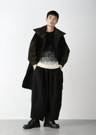 身体を包み込むオーバーサイズシルエットが印象的なユニセックスのロングコートです。